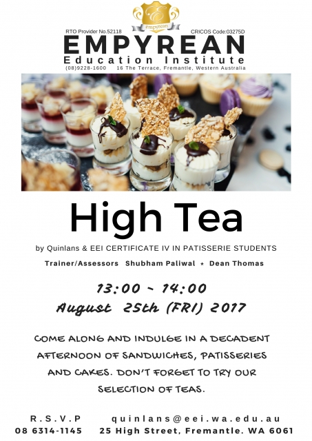 The High Tea event organises and manages by our Certificate IV Commercial Cookery and Certificate IV in Patisserie.